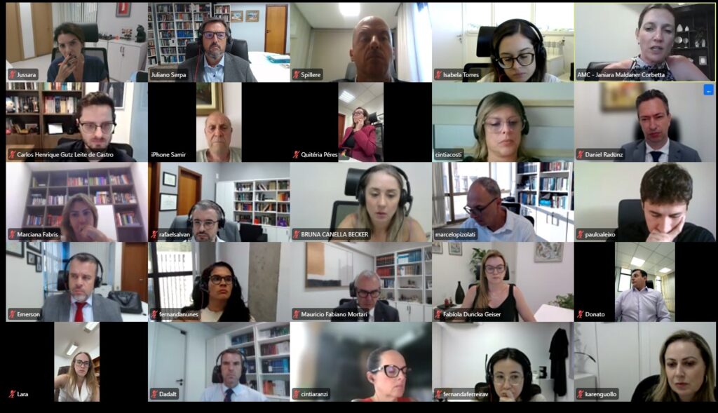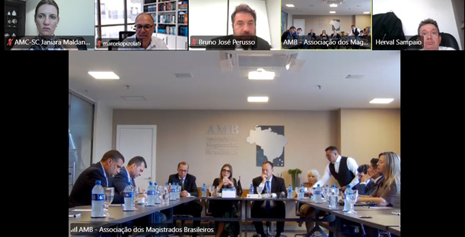 Dirigentes da Associação dos Magistrados Catarinenses (AMC) participaram de reunião organizada pela Associação dos Magistrados Brasileiros (AMB) para tratar de temas de grande relevância para a carreira. A Juíza Janiara Maldaner Corbetta, presidente da AMC, o Juiz Marcelo Pizolati, vice-presidente da AMB, e o Desembargador aposentado Getúlio Corrêa, presidente da Associação dos Magistrados da Justiça Militar, integraram o encontro que reuniu lideranças da Magistratura de todo o país.