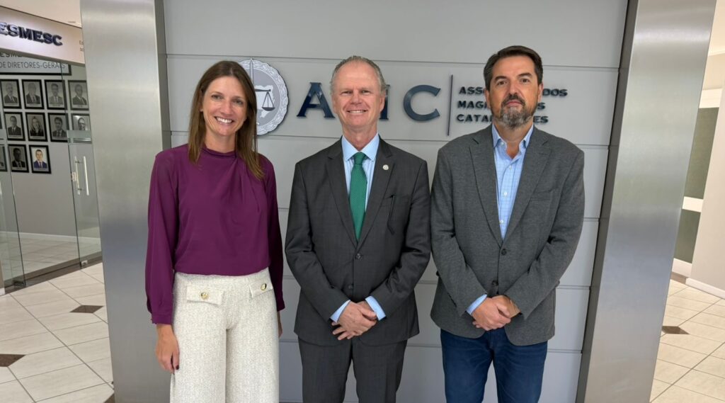 O presidente do TJSC, Desembargador Rubens Schulz, esteve na sede da AMC, nesta quinta-feira (9), para tratar de detalhes da regulamentação das verbas indenizatórias da Magistratura. Schulz foi recebido pela presidente e pelo 1º vice-presidente da AMC, Janiara Maldaner Corbetta e Juliano Serpa.