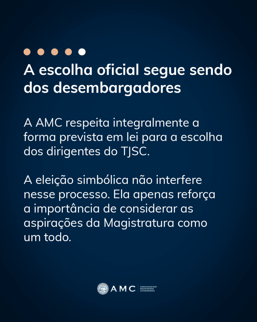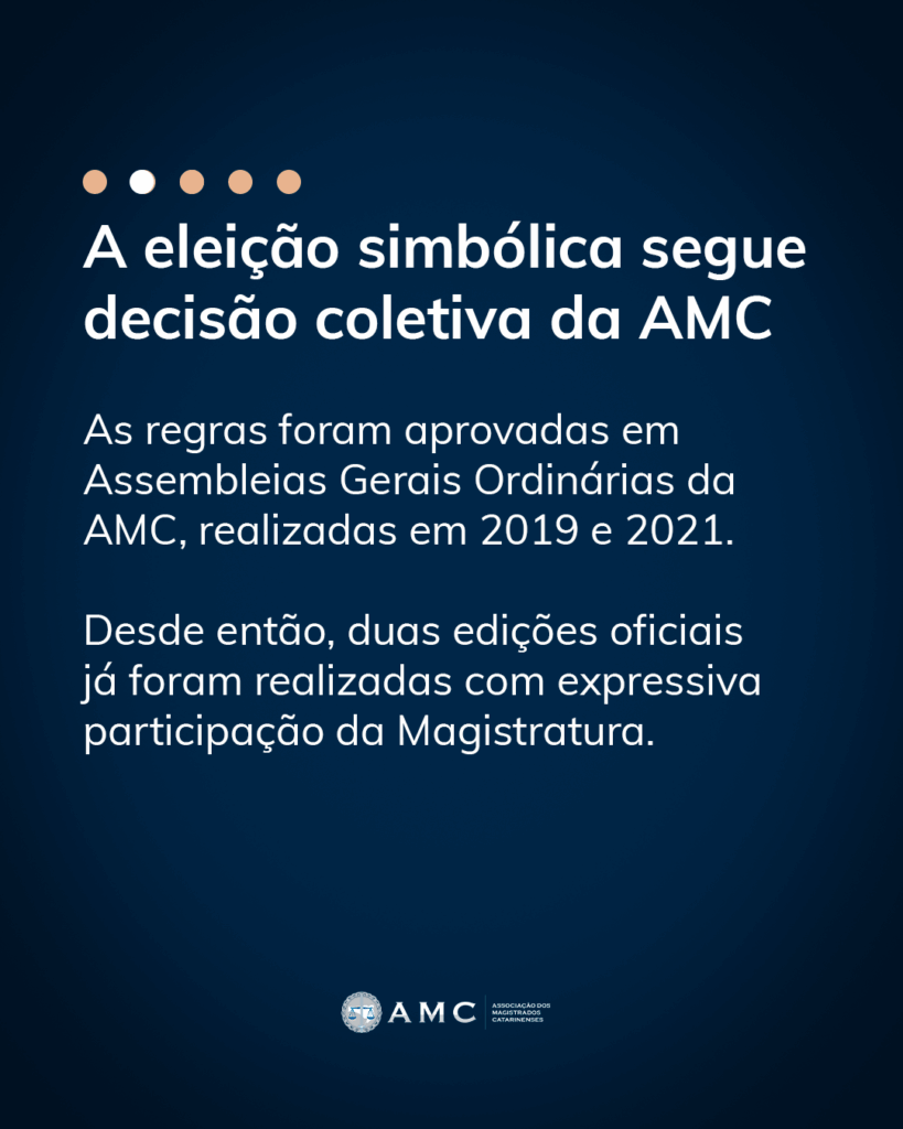 A votação para a Eleição simbólica promovida pela AMC será realizada com o sistema e-Voto do Tribunal Regional Eleitoral de Santa Catarina (TRE-SC), garantindo segurança e sigilo ao processo.