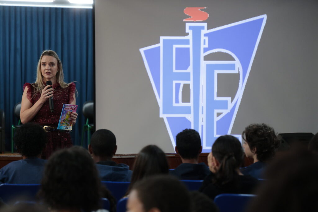 O projeto PJSC nas Escolas foi lançado no Instituto Estadual de Educação na última sexta-feira (14), marcando um novo passo na aproximação do Poder Judiciário catarinense com estudantes e professores. A atividade foi conduzida pela Juíza Bruna Luíza Hoffmann, que recentemente passou por treinamento da Associação dos Magistrados Brasileiros (AMB) para implementar o programa em Santa Catarina. Com uma abordagem dialógica, acessível e dinâmica, a magistrada conduziu uma conversa que despertou grande interesse entre os alunos.