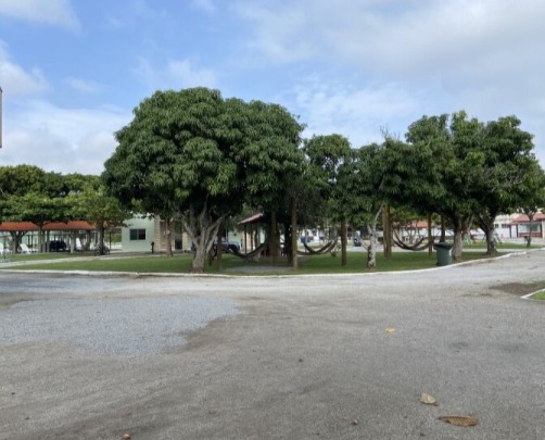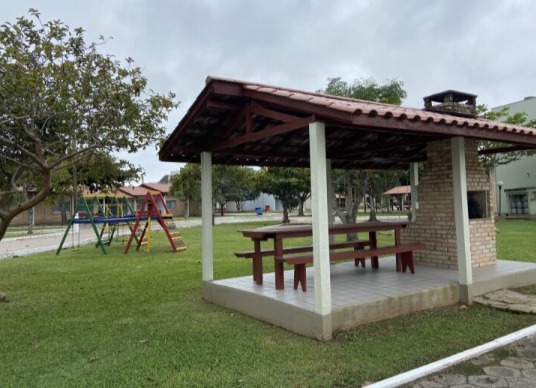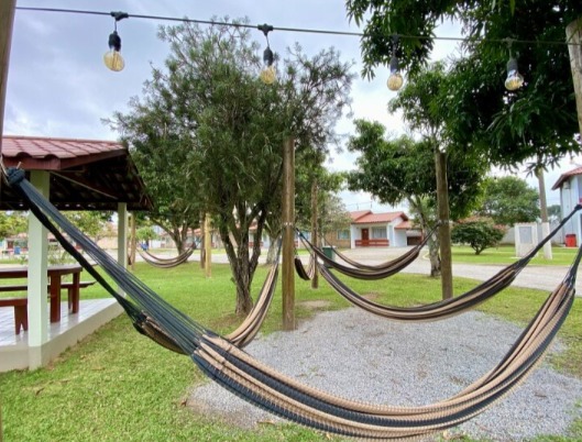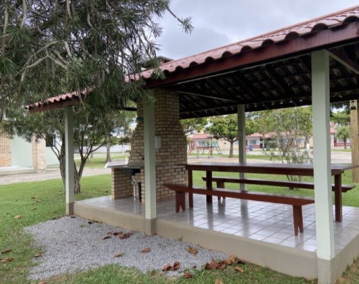 | 19 casas, cada uma com dois quartos, banheiro, sala, cozinha e uma área com churrasqueira;